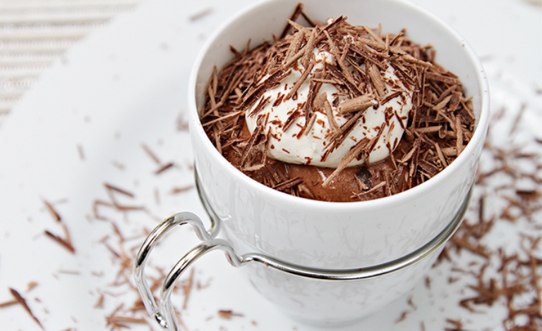 შოკოლადის ნარევი ოდნავ გააციეთ და გადაურიეთ ხაჭოსა და ნაღების ნარევს