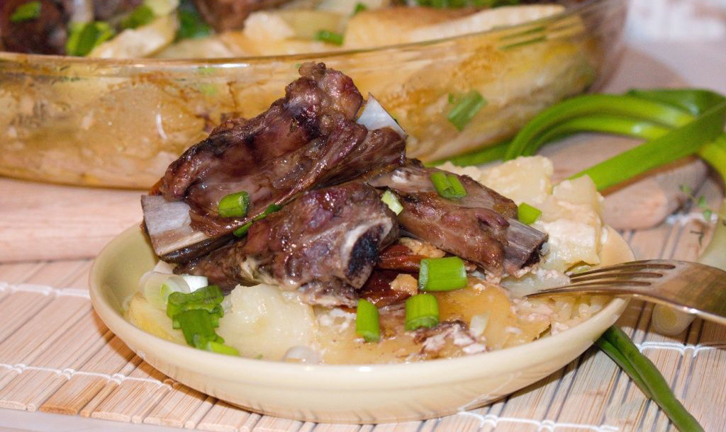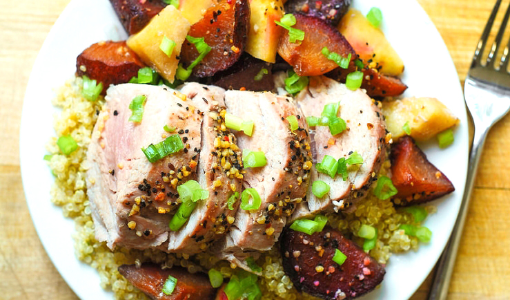 ხილი შესანიშნავად ავსებს უხვად შეკაზმული ღორის ხორცის გემოს