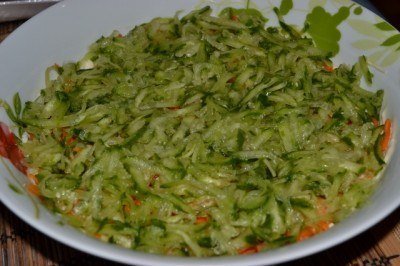 ყველაფერი დაჭერით მოგრძო ნაჭრებად. (კიტრი შეგიძლიათ გახეხით მსხვილ სახეხზე).