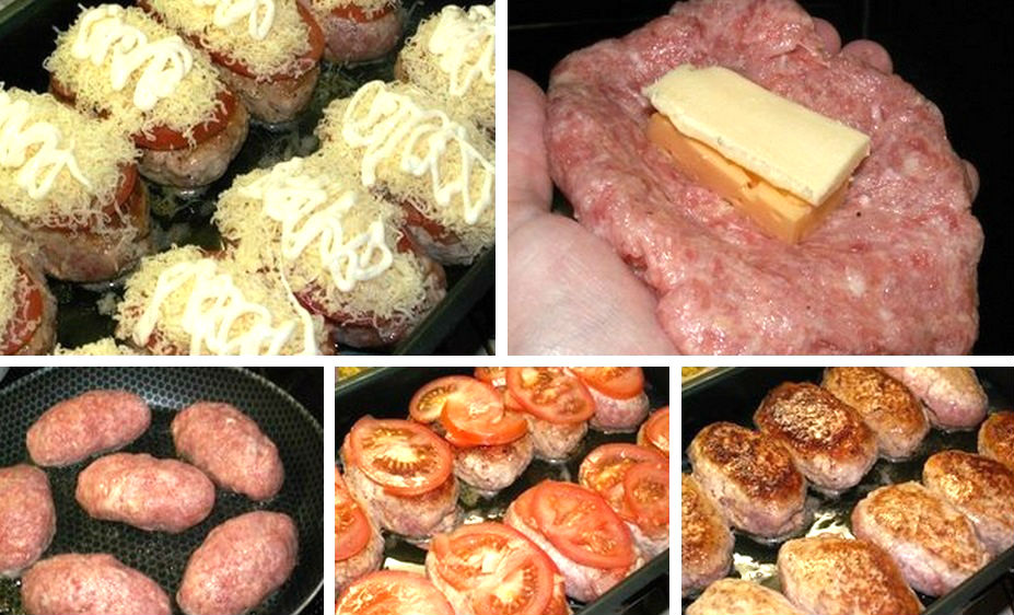 პომიდორი დაჭერით თხლად და დაალაგეთ კატლეტებს ზევიდან.