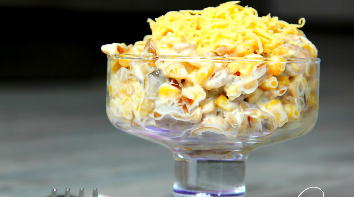 დაამატეთ სიმინდი და მაიონეზი, კარგად აურიეთ და მიიტანეთ სუფრასთან
