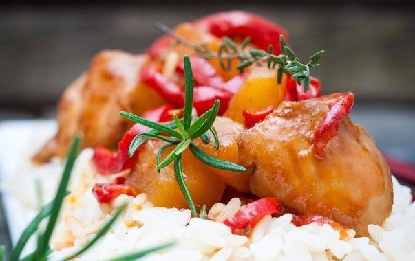 დაჭერით წვრილ გრძელ ნაჭრებად წითელი ბულგარული წიწაკა და ანანასი