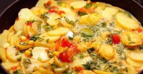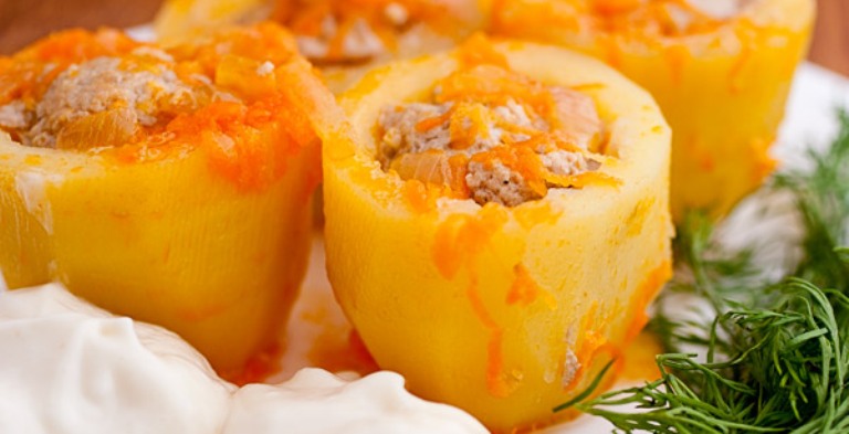 კარტოფილი დაჭერით რგოლებად და ოდნავ მოშუშეთ